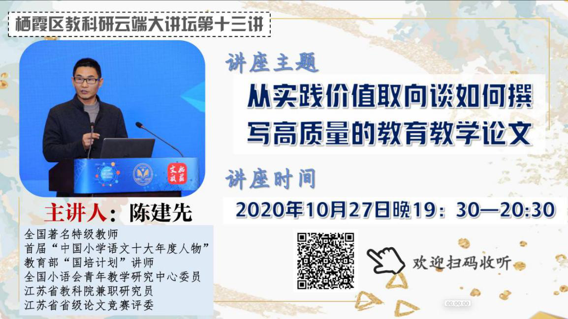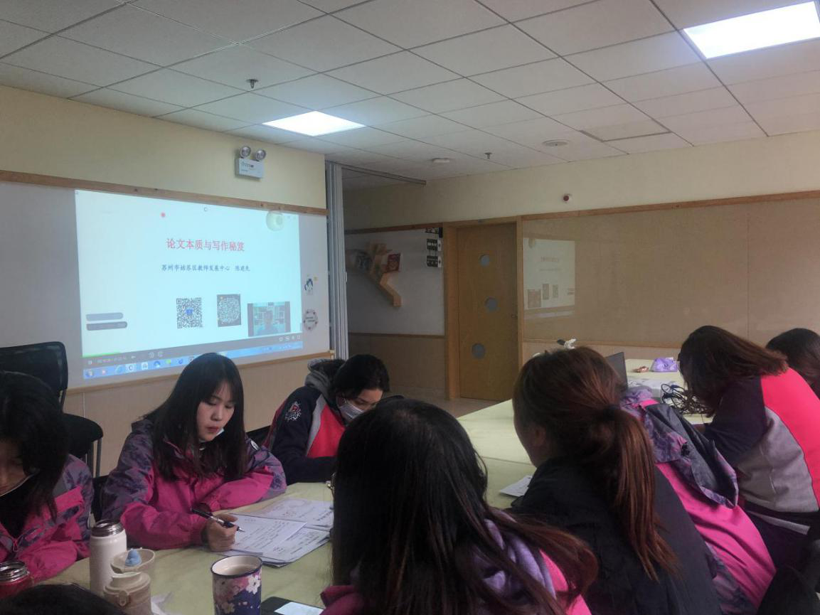 本次栖霞教科研大讲堂第十三讲是由苏州市姑苏区教师发展中心的陈建先老师带来的《从实践价值取向谈如何撰写高质量的教育教学论文》。青秀城的老师们共同参与了此次的学习。