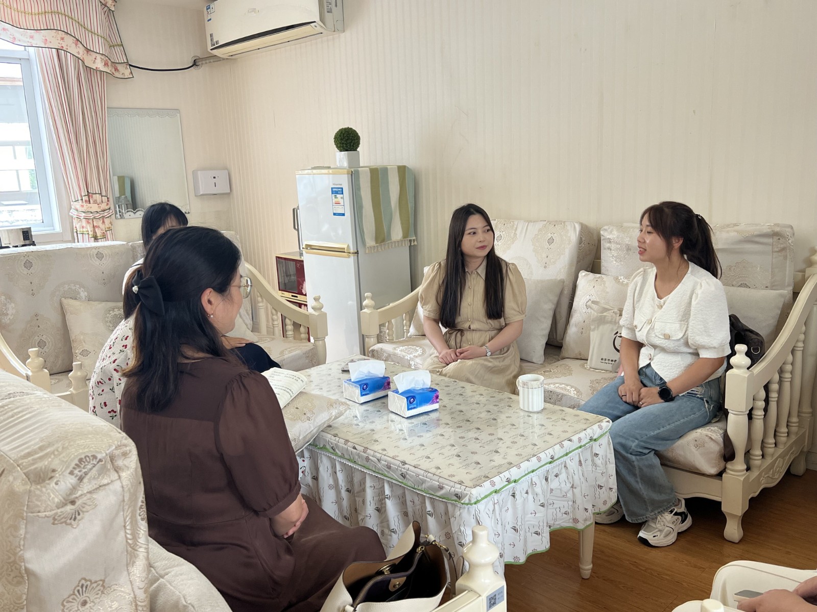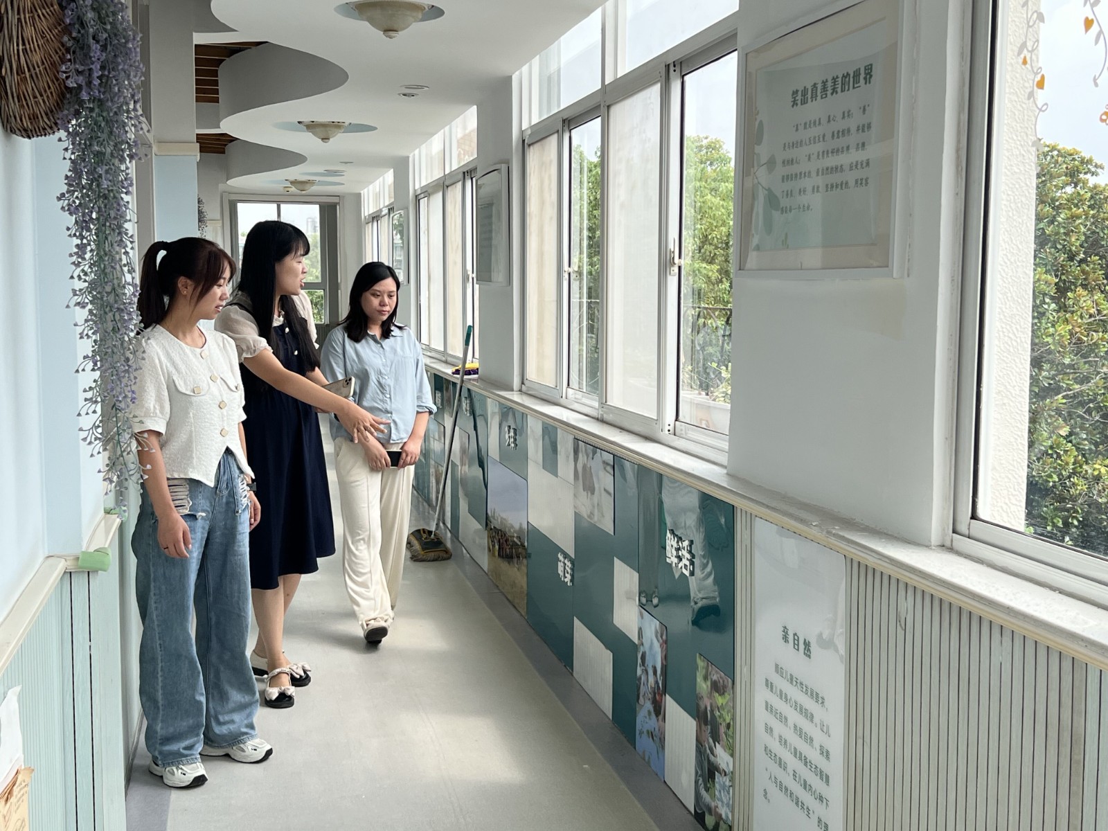 中心园张倩倩园长、嘉誉山分园嵇倩园长、集团办公室蒲瑞娟主任代表园所对高老师进行欢迎,并倾听、落实她的学习规划,从而让高老师深入班级,观察体验,浸入式跟岗。之后,她在老师引导中畅游园所环境,感受亲生命教育文化,在行走中、倾听中,了解迈幼93年的文化历史,知晓亲生命教育诞生故事,体验园所“爱”的氛围。
