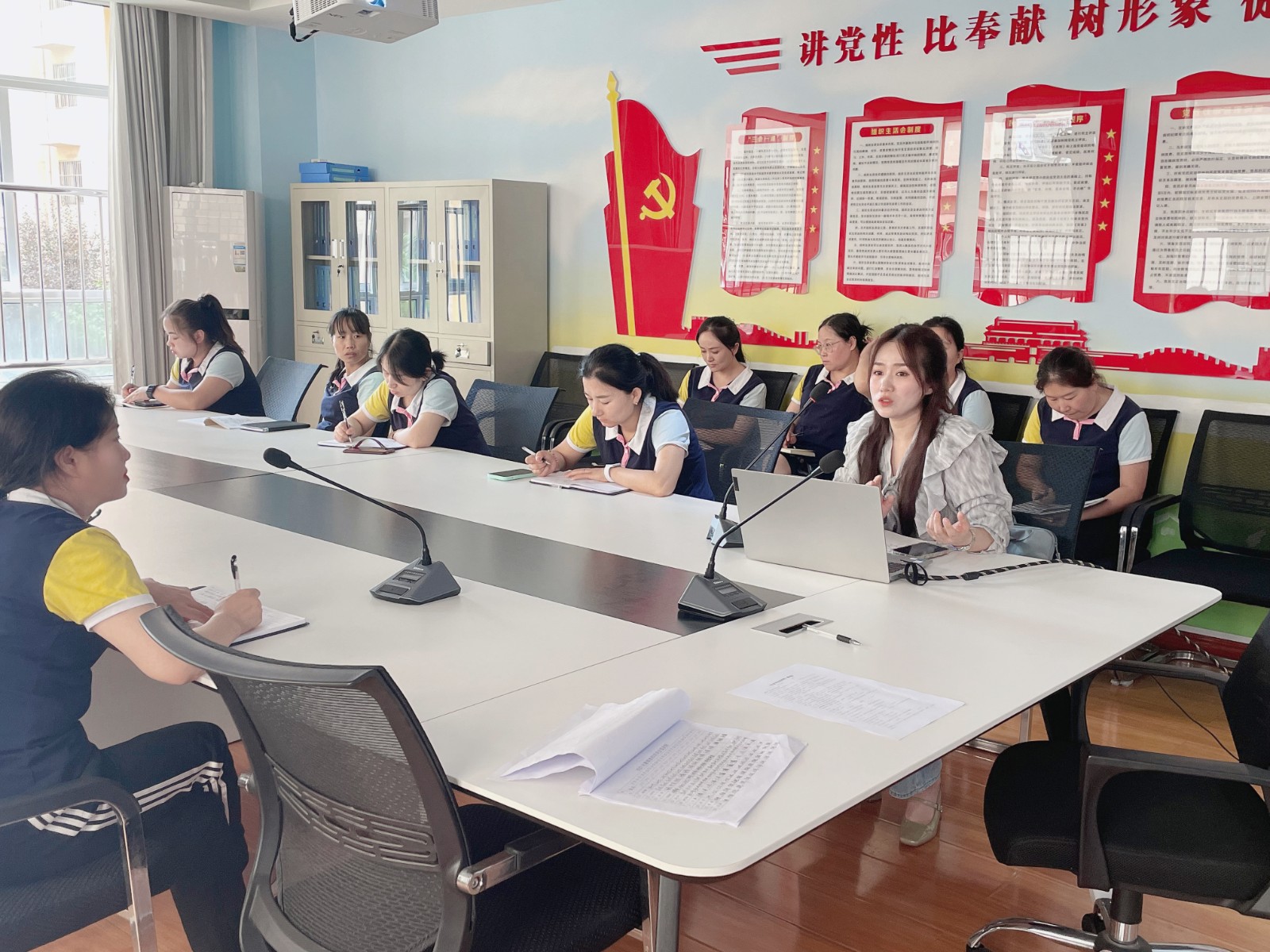 基于当地教育政策和商州第二幼儿园工作安排,骆雪妍老师以党员身份严格要求自己,坚定理想信念,积极奉献。在二幼王妍园长的带领中,她通过参观园所环境,了解当地发展需求、园所文化,提前查阅教师们的环境方案,与园长、教师共同交流,分享迈幼教育集团亲生命教育理念及具体实施方式,预设该园园所文化环境,设想后续可生发研究的方案。