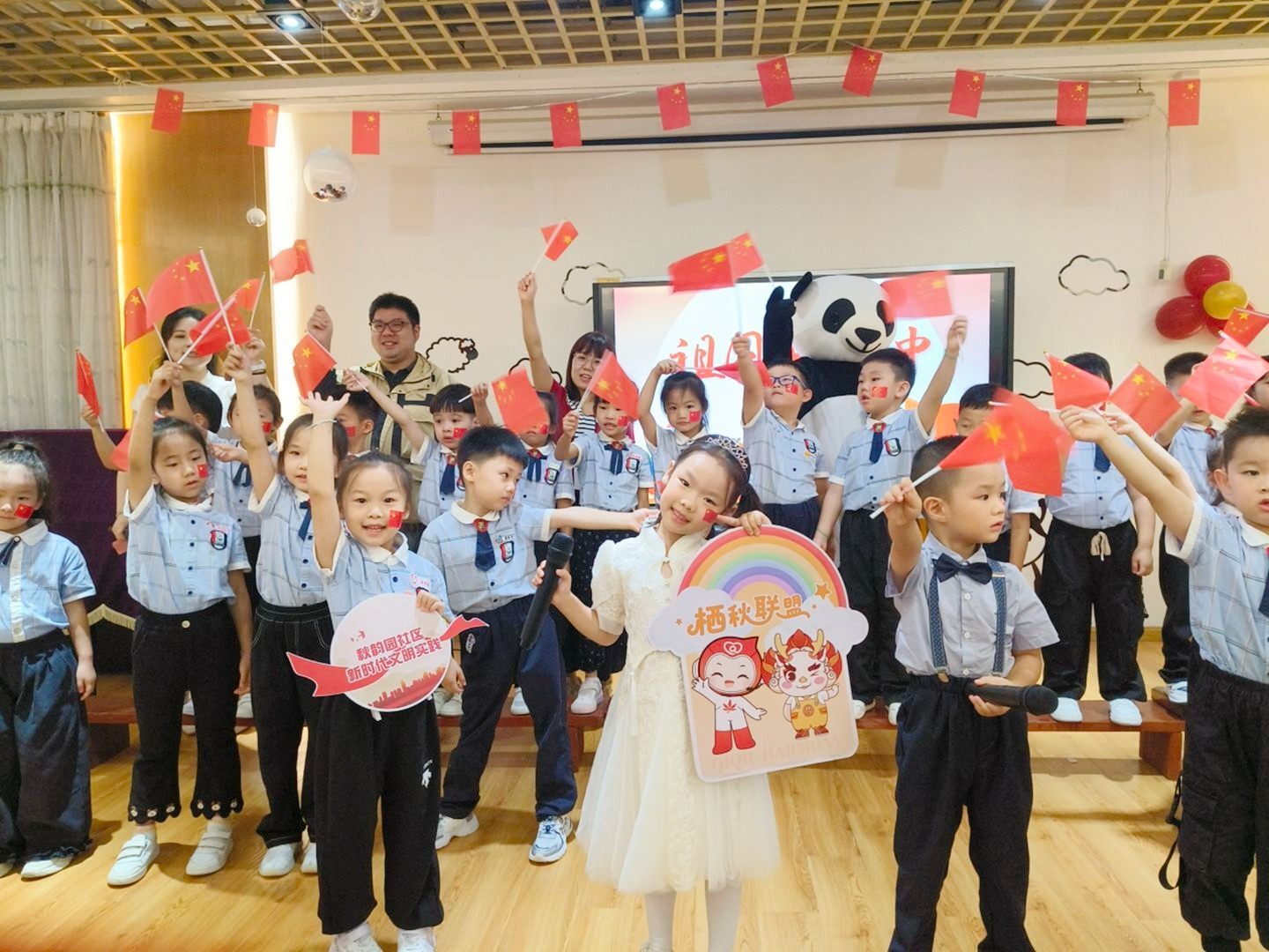 压轴的合唱《红红的太阳》将氛围推向高潮。孩子们站姿挺拔,清脆的童声穿透现场:“红红的太阳升东方,鸟语伴花香……” 稚嫩的歌声里满是对祖国的热爱,也为国庆增添了鲜活的童趣。