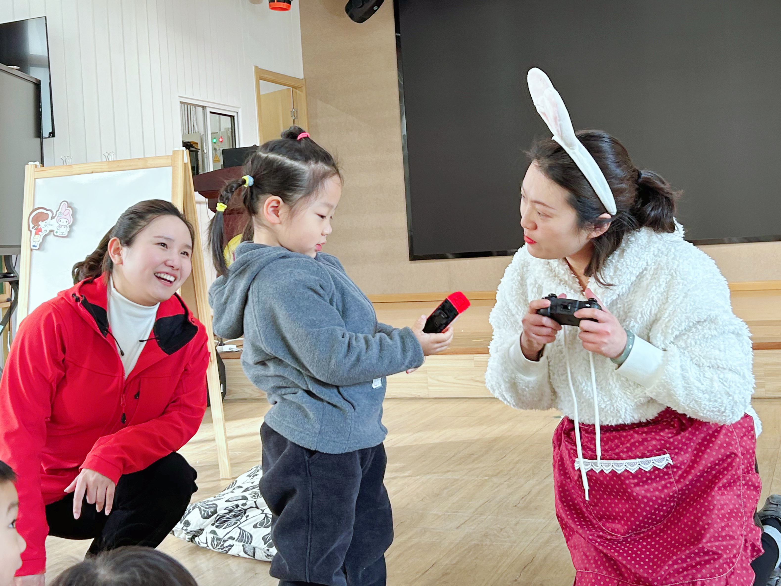 其次,由南京市市级机关第一幼儿园彭义芹老师带来了小班社会《借玩具》,活动以情景表演贯穿始终,让孩子在情景表演中学习探索向同伴借玩具的方法:交换、合作以及学说有礼貌的向他人借玩具,从而培养孩子的社会交往能力。在情景表演中,孩子们表现的非常好,不仅积极动脑筋想办法向兔姐姐借到玩具,还能大胆并有礼貌地向兔姐姐借玩具。增进了幼儿的社会交往能力。