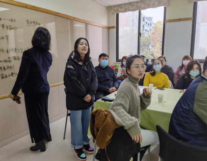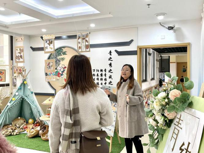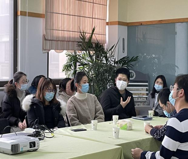 会议伊始,陈蕾园长及我园兼职园长刘晶波教授对各位家委的到来表示了热烈的欢迎,为了让家长更好地了解我园办园背景、理念,陈园长带领家委们参观园所环境,为家委会成员解读了“青之秀之成之”的办园理念,并带领家委会成员参观了班级的公共环境,给予家长直观了解班级课程开展情况的机会,在一定程度上减轻家长因疫情无法和班级老师了解详细情况的焦虑。
