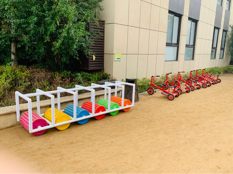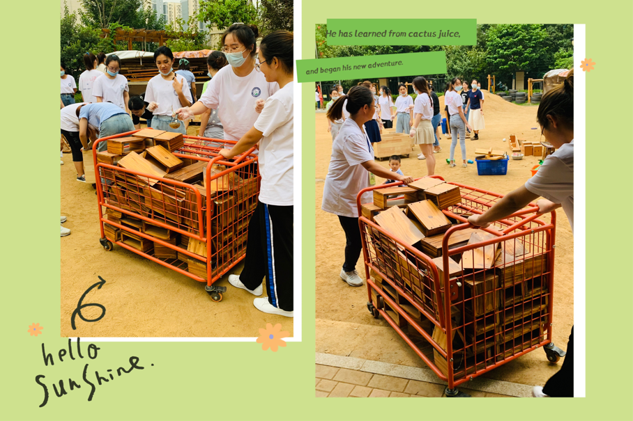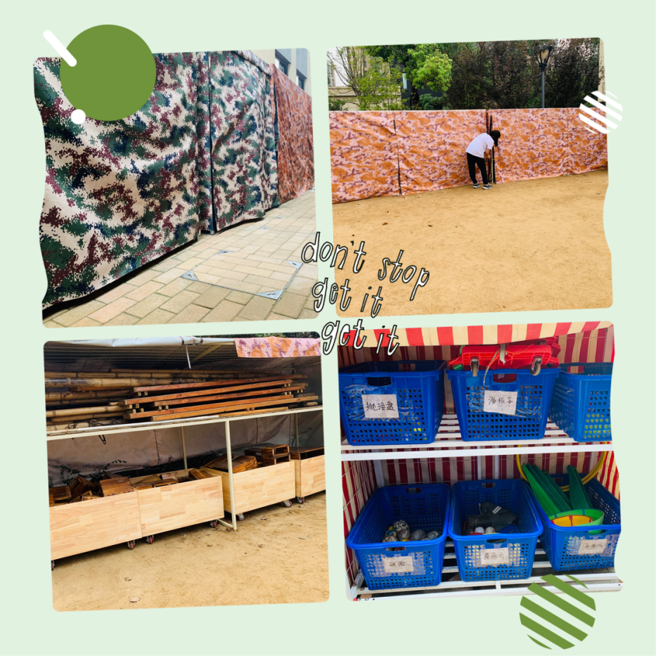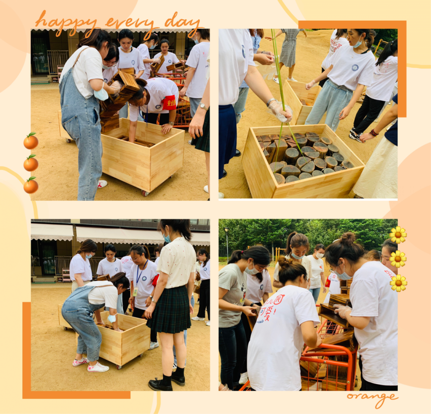 接下来,在陈园长的带领下,我们来到了幼儿园操场的器械陈列架。通过一段时间的游戏,引发了教师对于器械摆放合理性的思考,考虑到幼儿的需要,同时为了方便幼儿取放,保证卫生安全等,我们老师分工合作,开始了一场调整“大运动”。