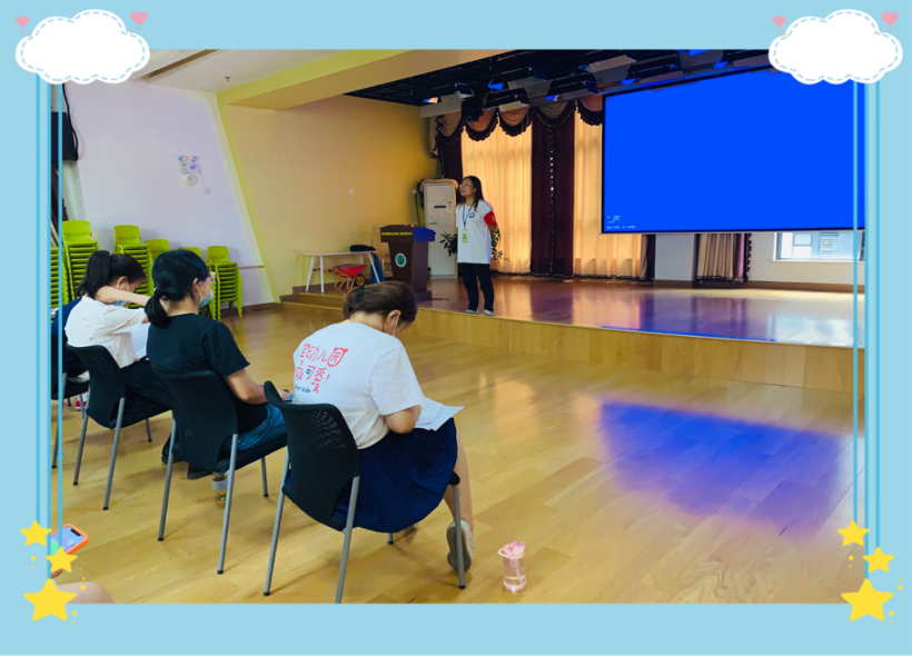 活动开始前,在陈园长的带领下,我们一起开展了静默游戏活动:一段舒适的轻音乐,一个安静舒适的环境,一段温柔的引导,让所有老师全身心投入到音乐的美妙旋律中。